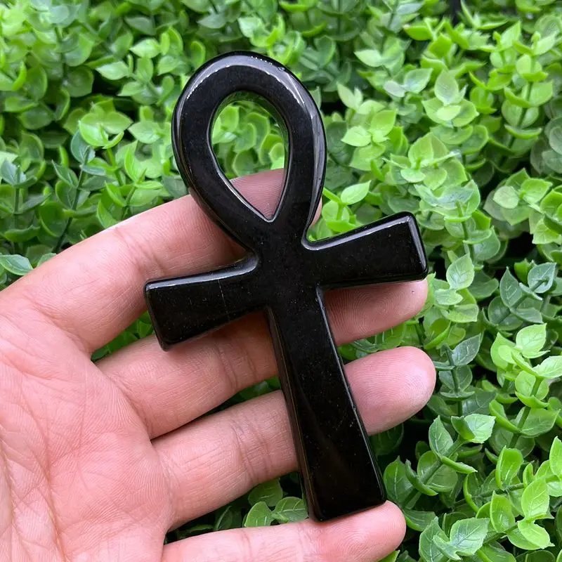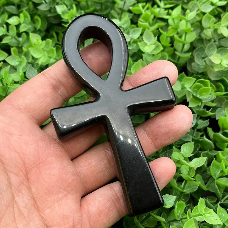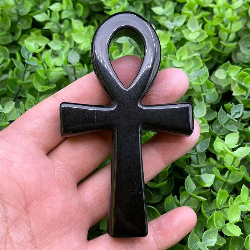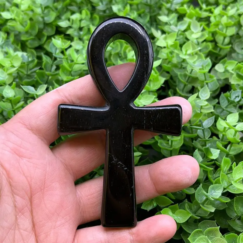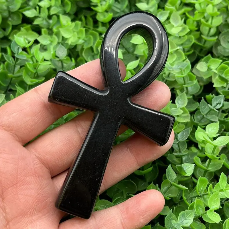 Natural Healing Obsidian Anka Black Crystal Cross Egyptian Ankh Life Symbol Hand Carved Crafts Orgone For Meditation Stone