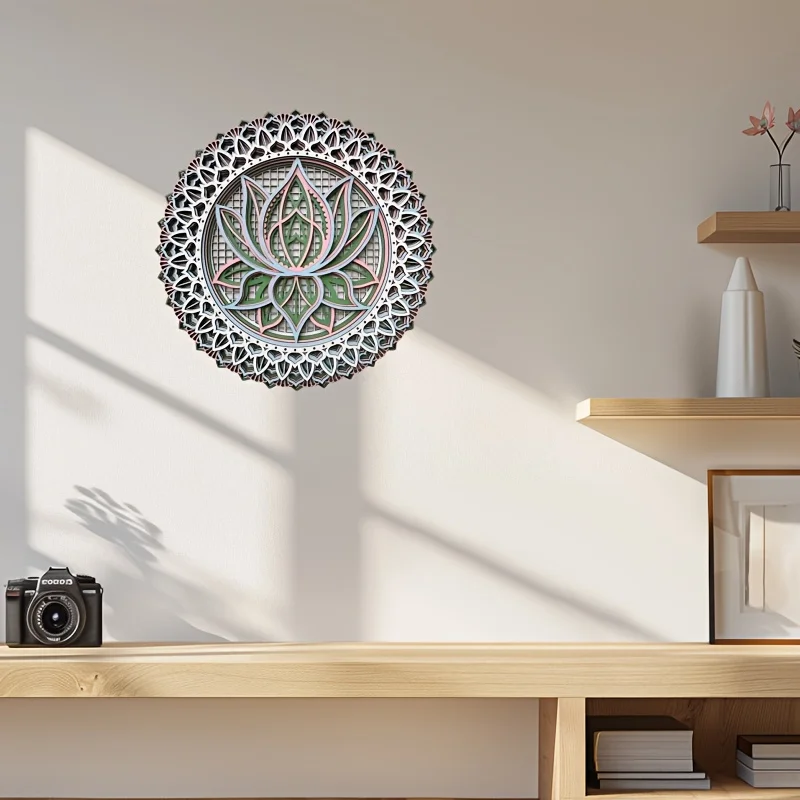 Sacred Lotus Mandala Wooden Wall Hanging Laser Cut Home Decor Geometric Art