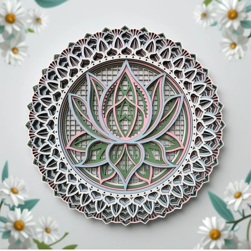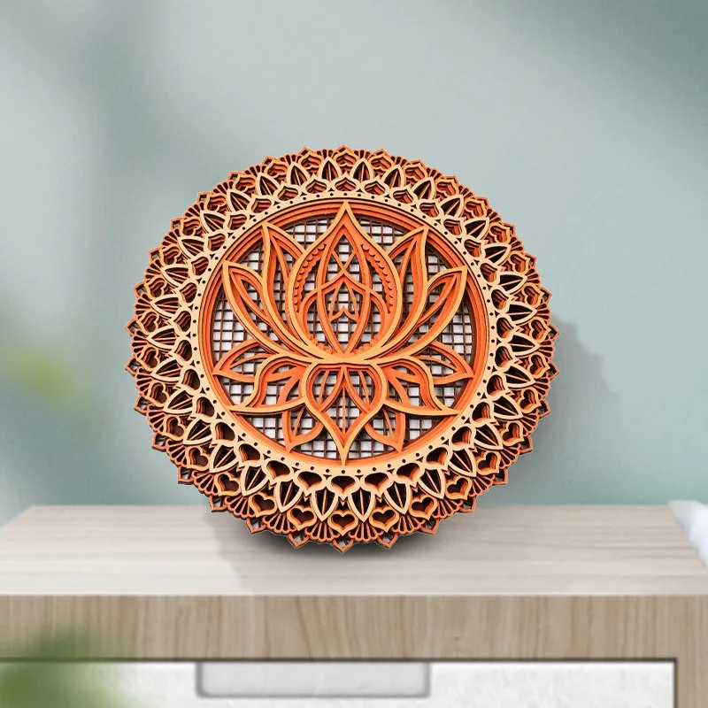 Sacred Lotus Mandala Wooden Wall Hanging Laser Cut Home Decor Geometric Art